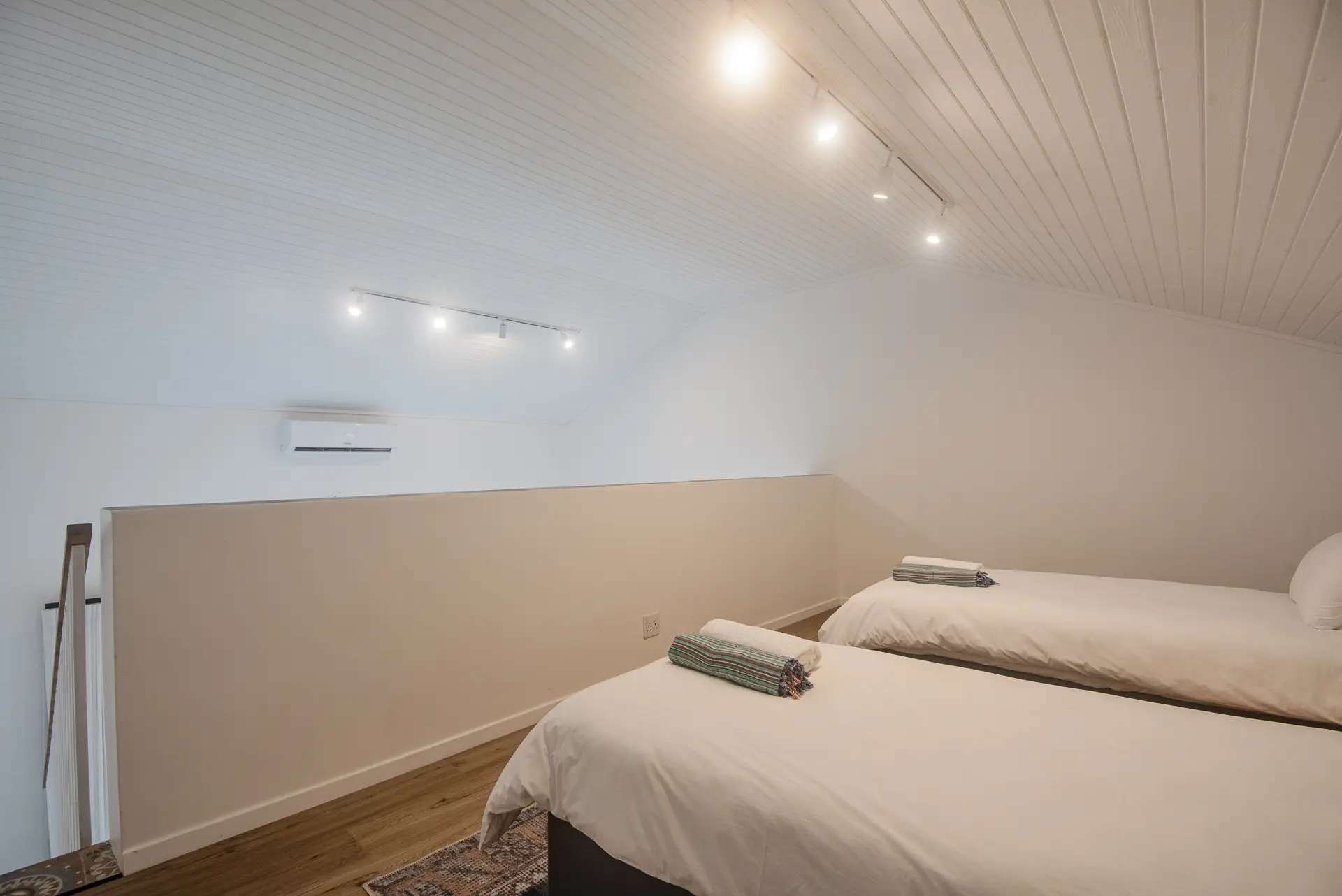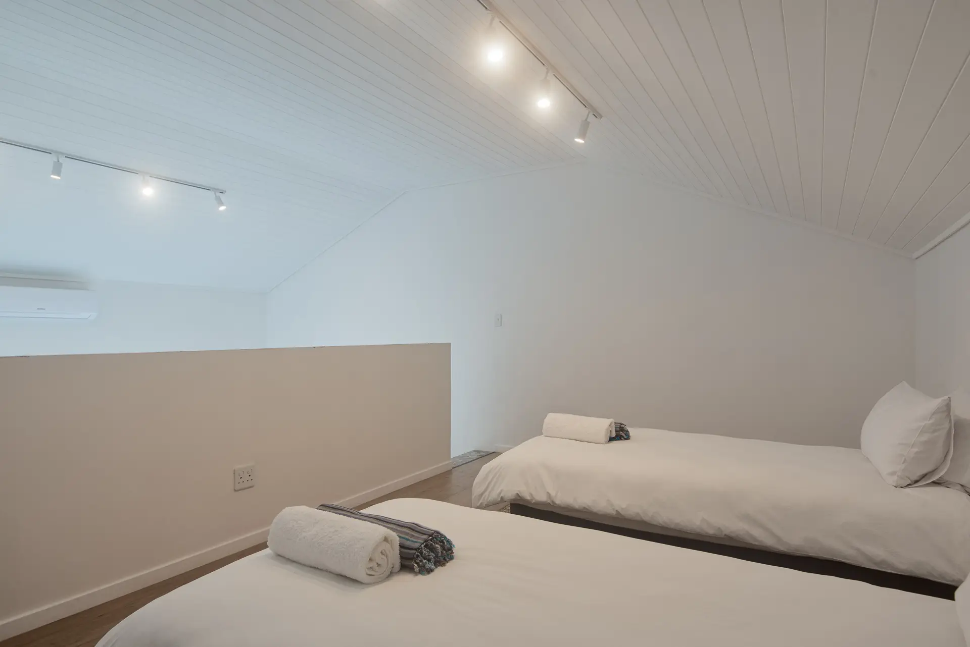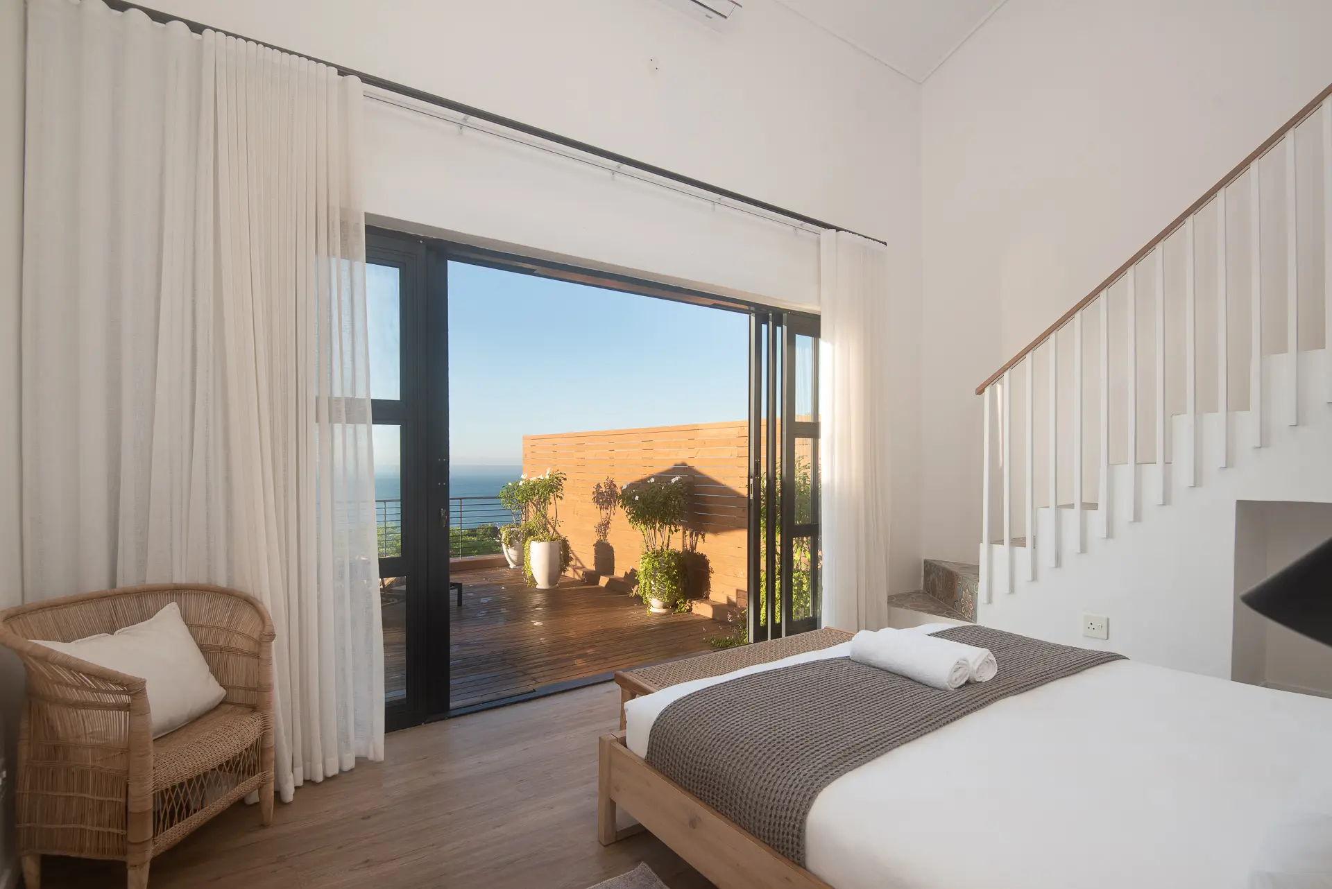 The home offers four well-appointed bedrooms units, each with a queen-size bed and an adjoining loft area with two single beds—ideal for children. Each bedroom opens onto the main deck and enjoys beautiful sea views.
