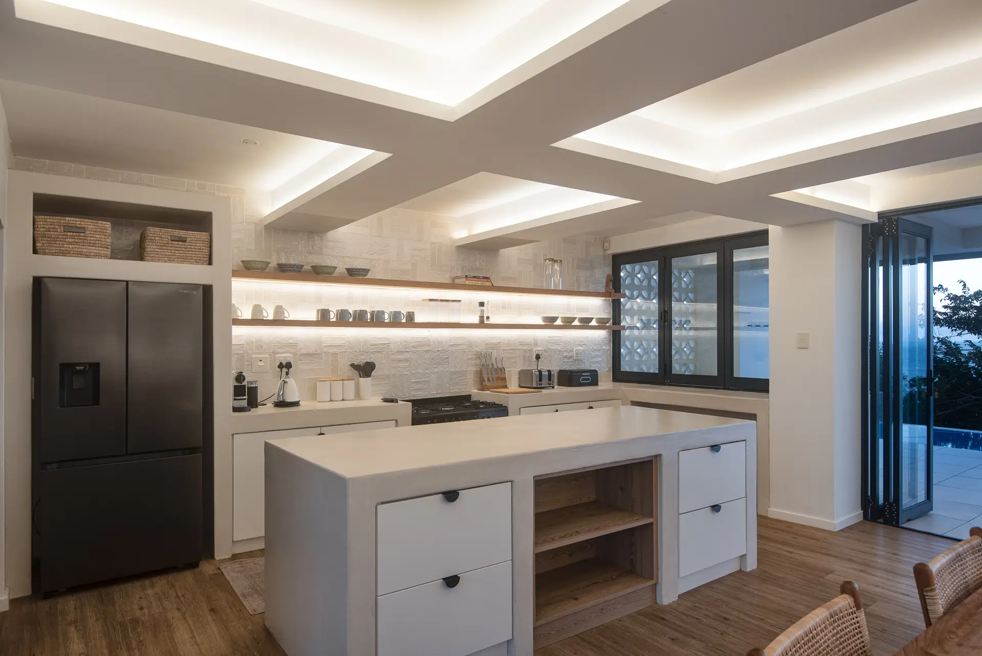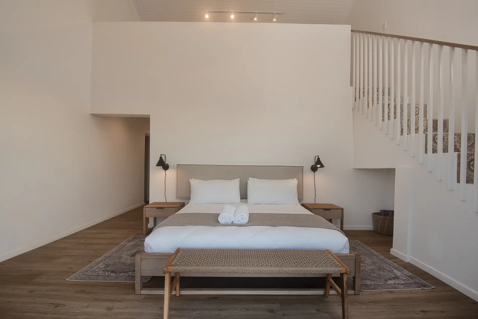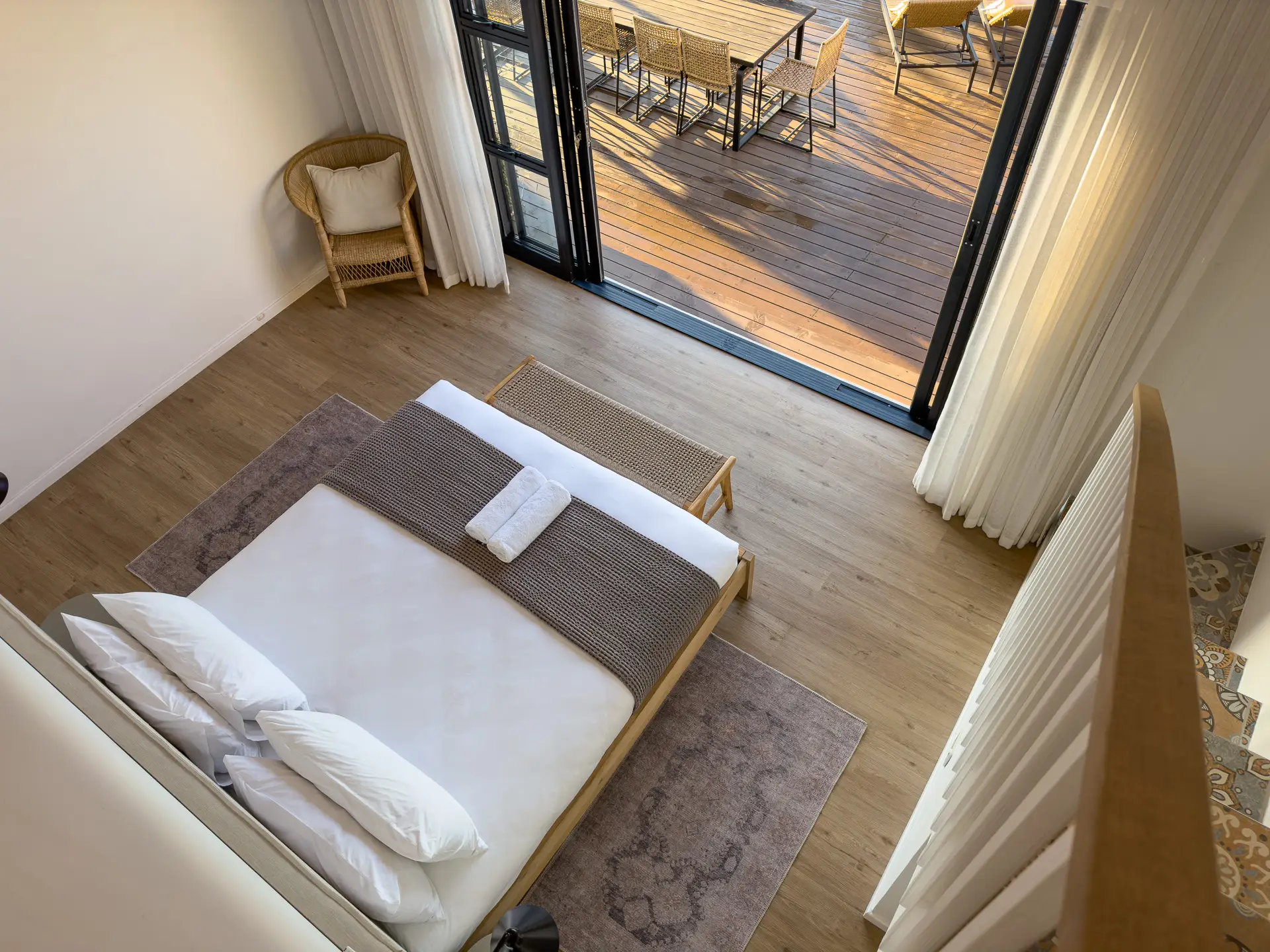 The home offers four well-appointed bedrooms units, each with a queen-size bed and an adjoining loft area with two single beds—ideal for children. Each bedroom opens onto the main deck and enjoys beautiful sea views.