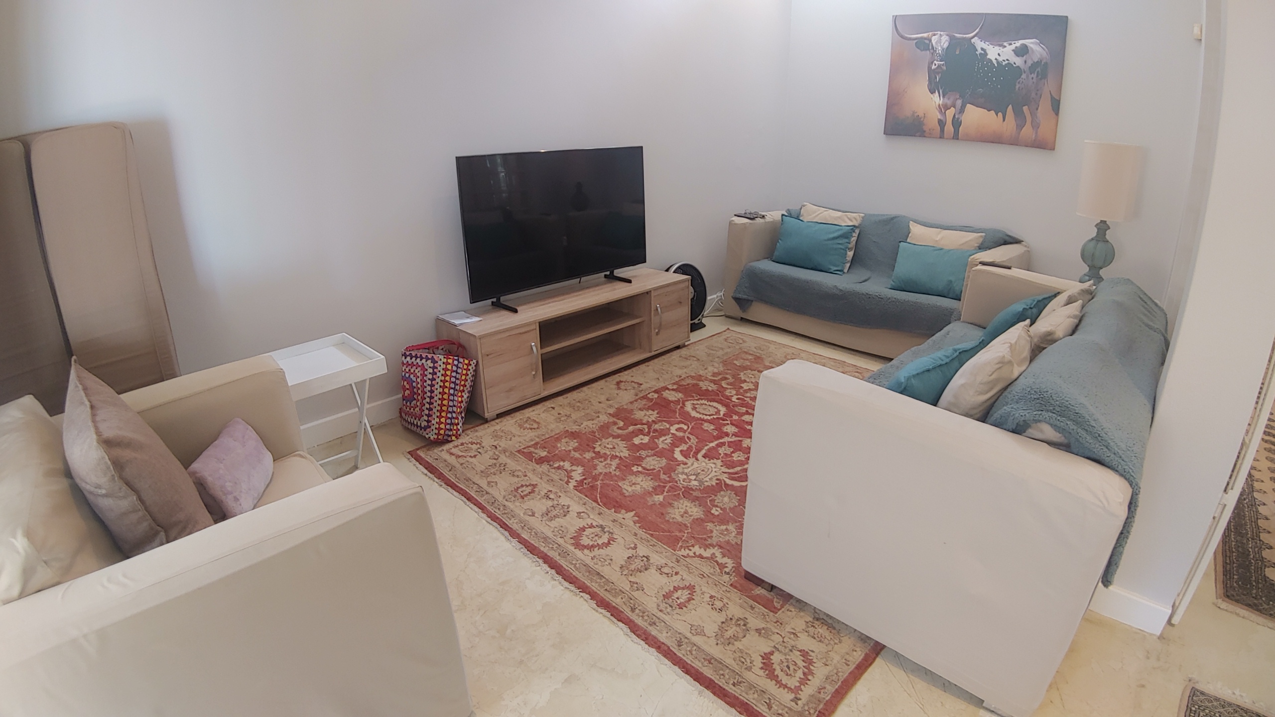 Has a open plan living area with lounge, dining room, kitchen & guest loo. The living/entertainment area flows onto a spacious patio with furniture, the pool and a braai area.