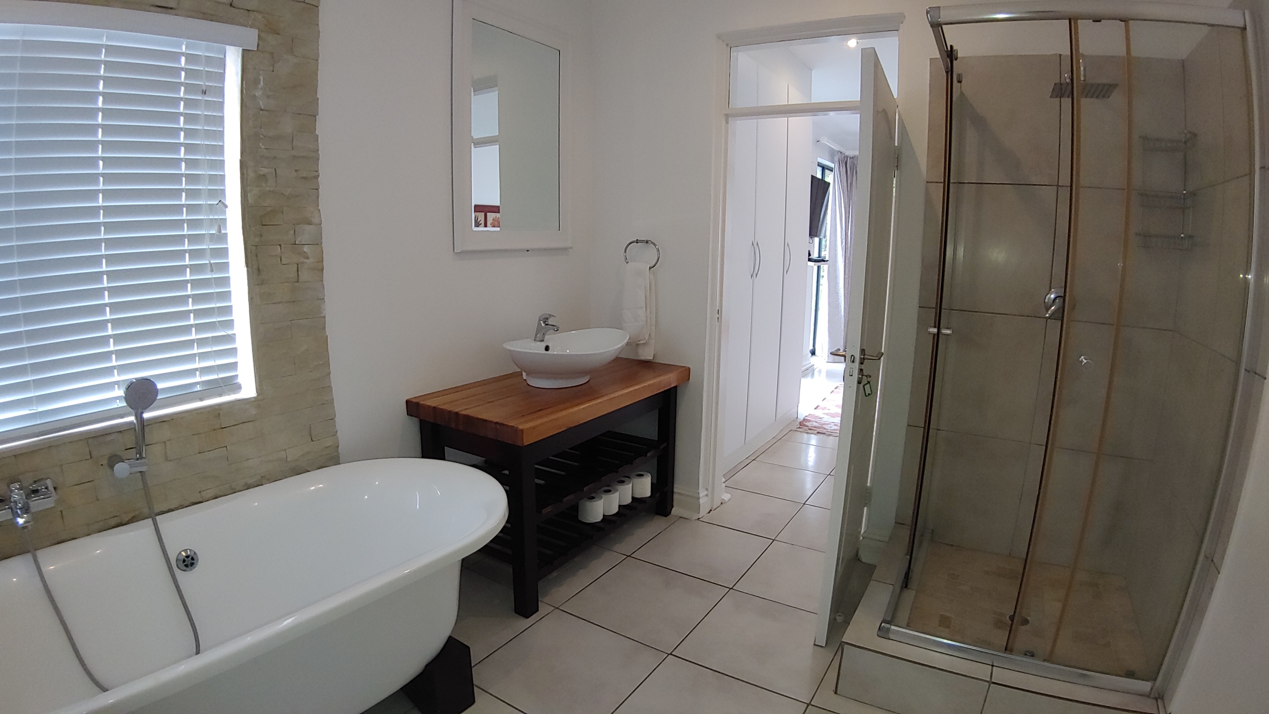 Bedroom 2: Double bed with a full en-suite bathroom.